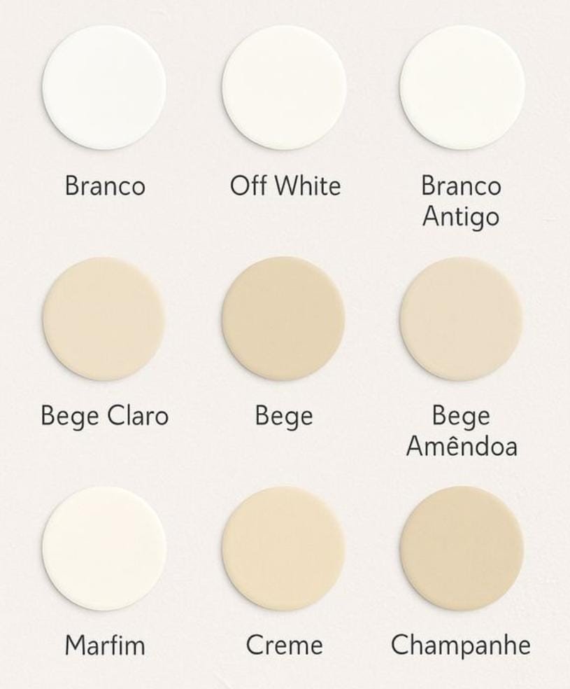 Sugerimos cores como off-white, marfim, creme, bege, areia, champagne e variações suaves desses tons, que conversam com o ambiente do campo e valorizam a proposta da celebração.